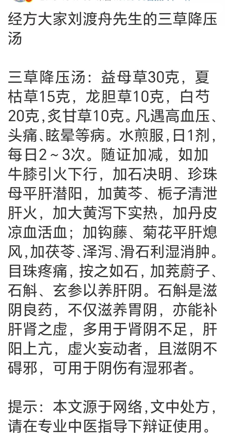经方大家刘渡舟先生的三草降压汤